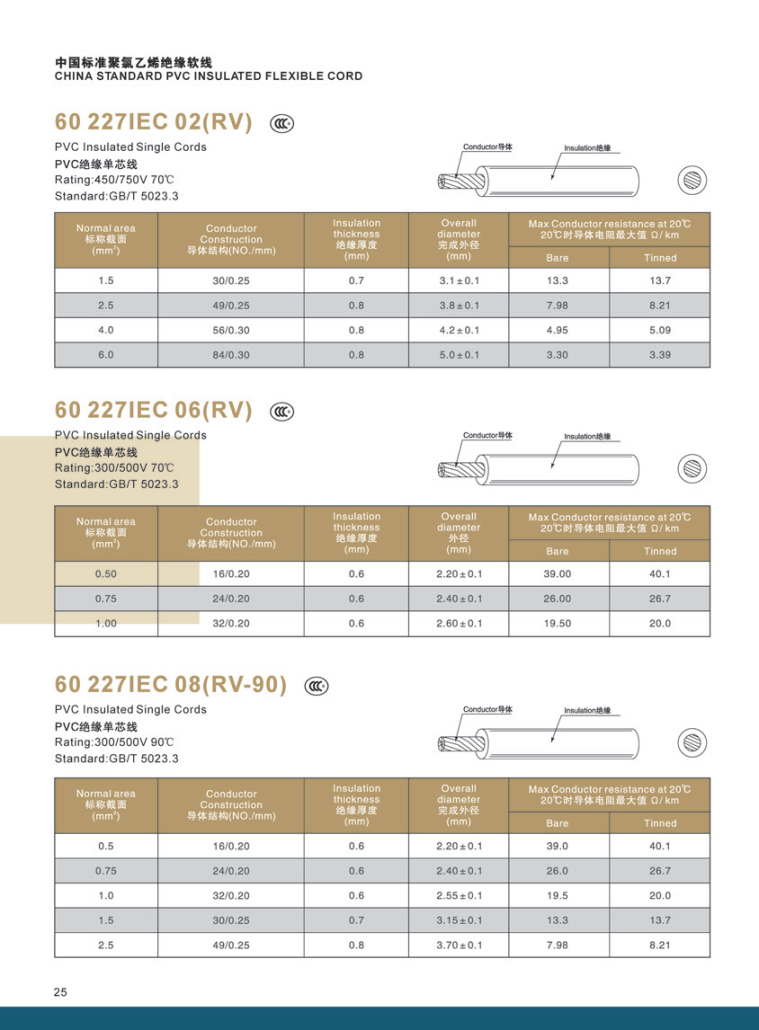 You are here: Home1 / Blog2 / Uncategorized3 / CHINA STANDARD PVC INSULATED FLEXIBLE CORD 60227 IEC 02RV 06RV 08RV-90