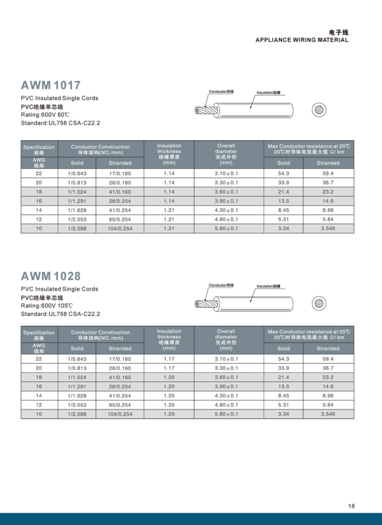 Electronic Wire AWM 1017 1028