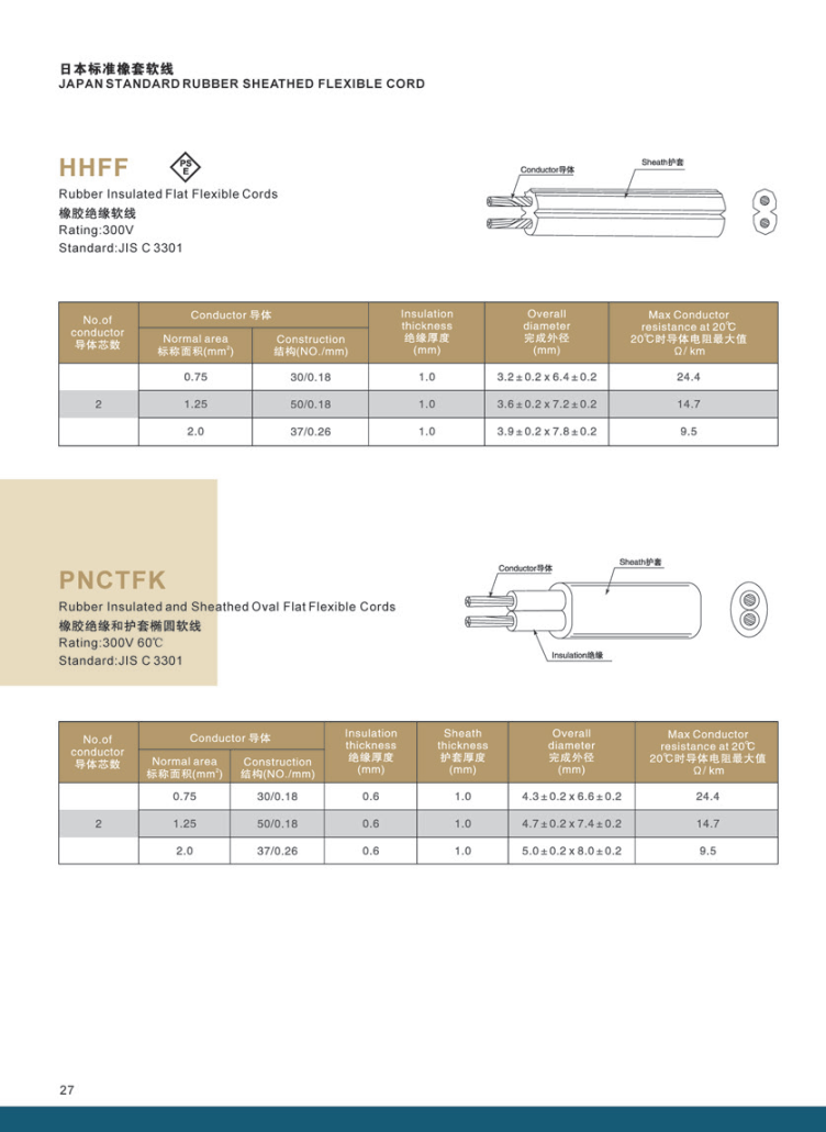 JAPAN STANDARD RUBBER SHEATHED FLEXIBLE CORD HHFF PNCTFK