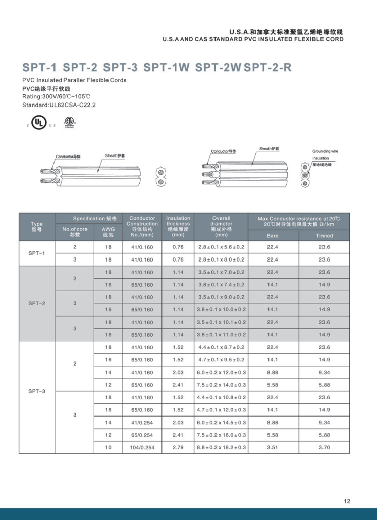 USA AND CSA STANDARD RUBBER SHEATHED FLEXIBLE CORD SPT-1 SPT-2 SPT-3 SPT-1W SPT-2W SPT-2-R